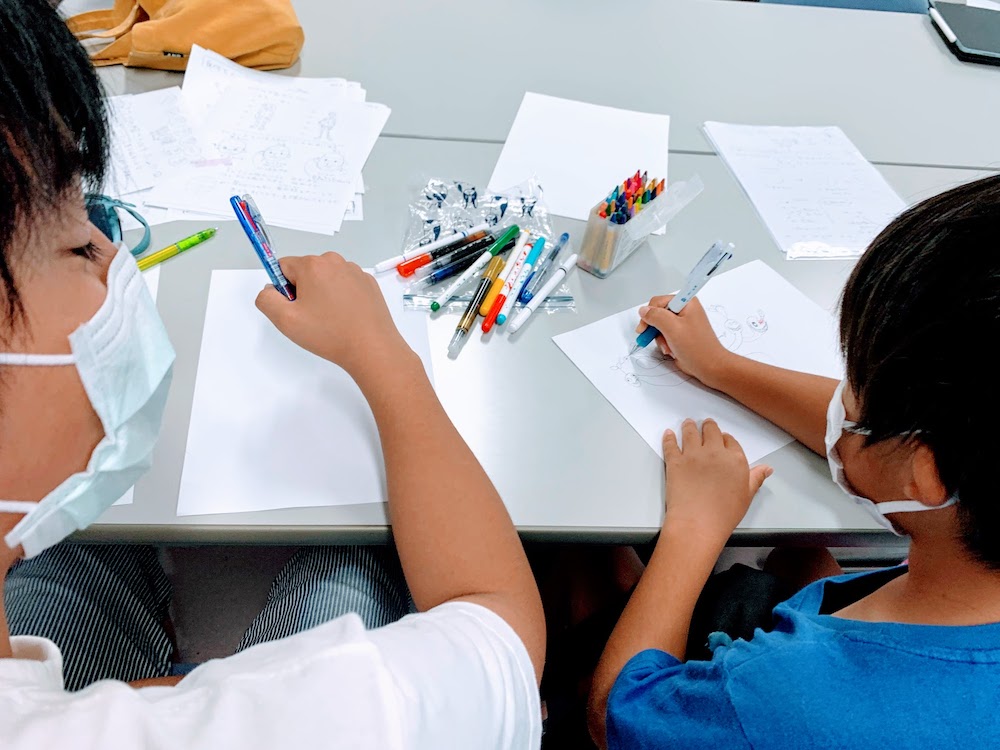 8月 24 2022 オフ みんなで桃太郎を描いたよ! 一級建築士として活動しながら県内の建築士を指導する傍ら、クリエイターとしてステキな世界を描く奥山さん。県内の子どもたちに、自由な世界を描く楽しさも伝えてくれています。 そんな奥山さんが、子どもたちへキャラクターの描き方とマンガの描き方を教えてくれました! 募集したその日に定員はすぐ満席に 絵を描くこと好き、イラスト、マンガ、アニメが大好きな小学1年生から中学生までが参加したワークショップは、保護者も一緒になって好きなキャラクター、ストーリ創りを楽しむ、静かに熱い、本当に楽しい時間でした。 桃太郎をお題に、スピンオフ・ストーリーをそれぞれの世界観で創作!周りの声も聞こえないほど自身の世界へ没頭する子どもたちの姿に触れる時間は、自身の好きに向かい合って夢中になる大切さを思い出させてくれる、大人も自身を振り返る学びの多い時間でもあります。 で、未来のクリエイターたちの描いた「シン・桃太郎」たちがこちら!(※作者許諾済のものだけ掲載しています) まずは思わず、なにこれ可愛いと微笑んでしまう桃太郎ストーリーを2選! 夏らしいブルー基調のTシャツとデニムのコーデで鬼殺に向かうモモちゃん。その道中、仲間にしようと声をかけた犬が実は猿であったことを見破ります。犬の被り物して鳴きマネまでしながら、飛び出るときは猿そのままという、人を騙すことには向いていないお猿さんとのやり取りが可愛らしい。これから鬼との生死をかけた壮絶な戦いが待っているとは思いもよらない、続きが超気になる作品です。 2作目は、セレブ感漂うA子さんと愛犬もものハートフルな桃太郎ストーリー。鬼を倒した後の後日譚なのかもしれません。ももは枝キャッチを命じられますが今ひとつ気持ちが盛り上がらない様子。そこでA子さんはきびだんごを報酬として提示。見事にもものモチベーション暴上げに成功し、枝キャッチ達成を伴走しています。きびだんごLOVE過ぎるももの趣向を見抜き、難色を示していた枝キャッチを嬉々として成し遂げるゴールにももを導くという、見事なA子さんの戦略が描かれた作品です。ももの自己肯定感もきびだんご愛と伴に上がっていったことでしょう。背景の草原や太陽の絵も温かいタッチでおしゃれでステキな世界観を創り上げています。 次は「悪とはなにか」、「鬼は本当に滅するべき存在なのか」といった、読む者のこれまでの価値観を揺さぶり新たな視点を与える哲学的な作品です。 鬼退治の道中に仲間を集めるももたろー。 しかし仲間だったはずの牛やキジは、まるでMinecraftの世界のように、焼かれた牛肉と鶏肉にされてしまいます。鬼ヶ島までついてきてしまった会社員は、仲間が次々と焼かれ食料化される衝撃的な事実に直面し、非日常を求め、ももたろーの甘い言葉に乗ってしまったことを悔やみ逃げ出してしまいました。この世界で善悪という価値観を持つ意味はあるのか、何が正しさなのか。まるでバンクシーの作品を見ているような、混沌とした現実世界を彷彿させ読む者が思わず自身の足元を見つめ直してしまう、そんな桃太郎アナザストーリーです。 アートに数学のような正解はない。1+1の答えは100でも、まだ存在が確定しない猫でもいいんです。この日のお題は「桃太郎」でした。謎の巨大桃から出生した、鬼滅を使命として生まれた主人公と犬猿雉がチームとなって世界に平和を取り戻す、というのがオリジナルストーリーです。 でもそんな他人の描いたレールや既成概念にとらわれず、自らの歩みこそが道なのだと、未だ誰も見たことのない世界を描く者もいます。きっとこういう子が世界の理を変えていくのでしょう。 一見うさ耳で萌キャラかと思わせておいて、うでに殿部が多数発生し排泄するというテレビ放送どころか、TikTokあたりでも即削除されそうなビジュアルです。しかも身長が20億メートルもある人智を超えた存在。「進撃の巨人」に出てくる超大型巨人でも60mですからその巨大さがわかります。地球の海洋で最も深いマリアナ海溝(9,814.6m)ですら、くるぶしも濡らすことができません。人類の敵となってしまったら、日本が誇るマンガのヒーローが全員出動しないと勝てそうもありません。そうならないことを祈りましょう。もはや右下に身長が100mもある、本来なら世界的な大事件に発展しそうなモブがいることは些細な問題です。桃太郎がどうとか言う次元を超えた、人類が積み上げてきた知見を根本から見直さなければならない、そんなスケール感の作品でした。 ちなみにサイエンティストのお兄ちゃんは「福徳岡ノ場海底火山の噴火」をテーマにしたマンガを描いていました。この兄弟には桃太郎は物足りないテーマだったようです。 保護者の方も一緒に楽しんだマンガを描こう!ワークショプ。子どもたちのクリエイティビティに感動しながら、みんなで笑いながら、本当に楽しい時間でした! 投稿ナビゲーション 過去