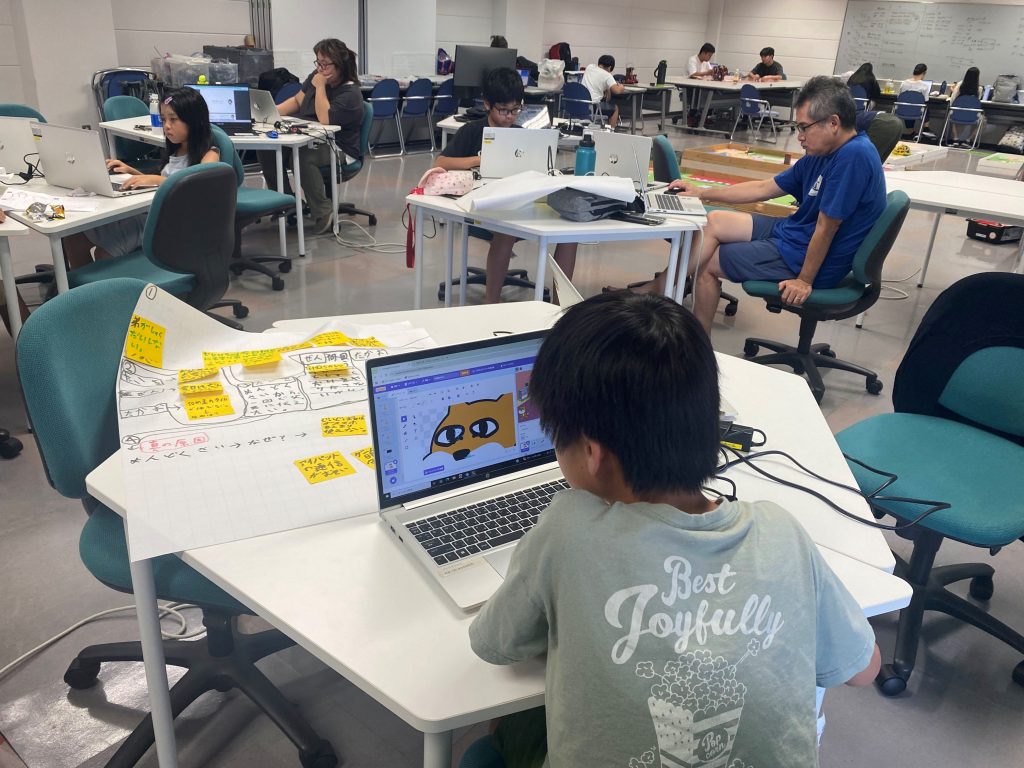 11月 09 2024 オフ scratchでアニメーション作成をしました! みんな真剣な表情でマウスを動かしています。 生成AIを使って、悩みながらも自分なりのアニメーションを作っていました。 完成した作品がどう動くのか楽しみですね! 投稿ナビゲーション 過去の投稿前 [開催の様子]プログラミングスタジアム・ワークショップ!!次の投稿次 [募集終了]プログラミングスタジアム・ワークショップ!!